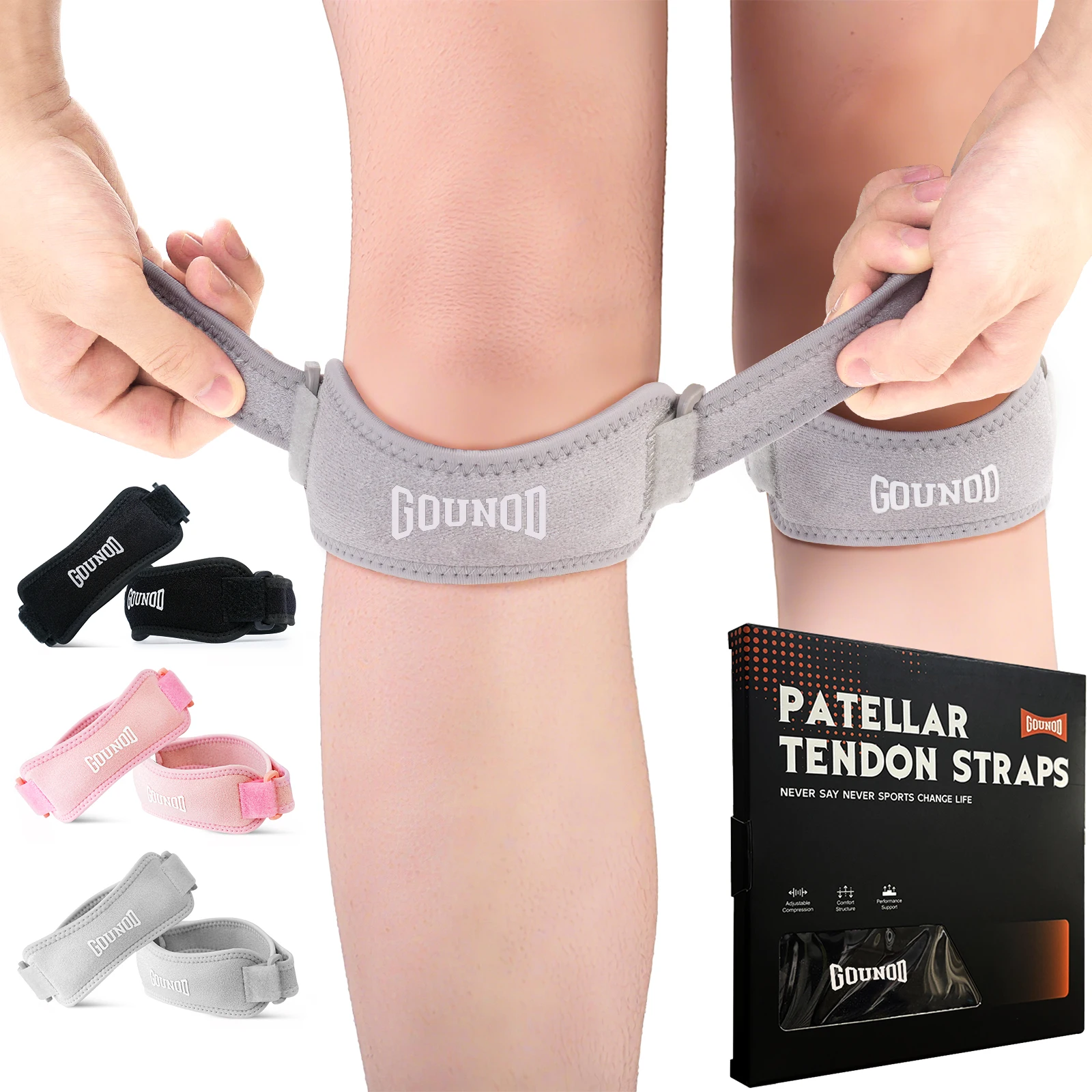 - High Quality and Durabl Fabric: GOUNOD patella knee braces are made from soft neoprene material and feature built-in silicone gel padding. Adapted with high-quality raw materials and standardized production techniques, they allow you to wear them without any discomfort, being both durable and easy to wash. Our knee braces provide ultimate comfort while stabilizing the knee