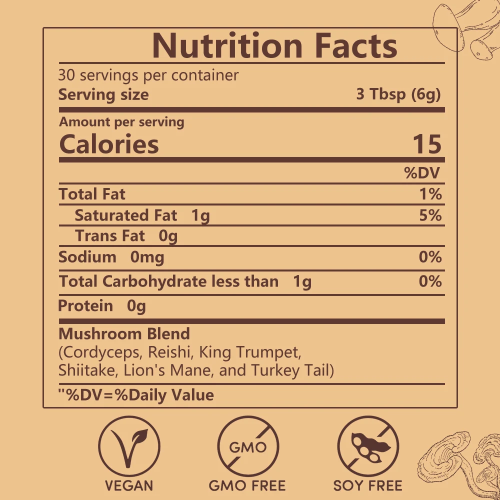 Premium non-GMO ground mushroom coffee. Free of soy, dairy, gluten, fillers, preservatives, flavors, and tree nuts. Ingredients must pass our third-party lab testing to ensure the product is safe, pure, and effective.